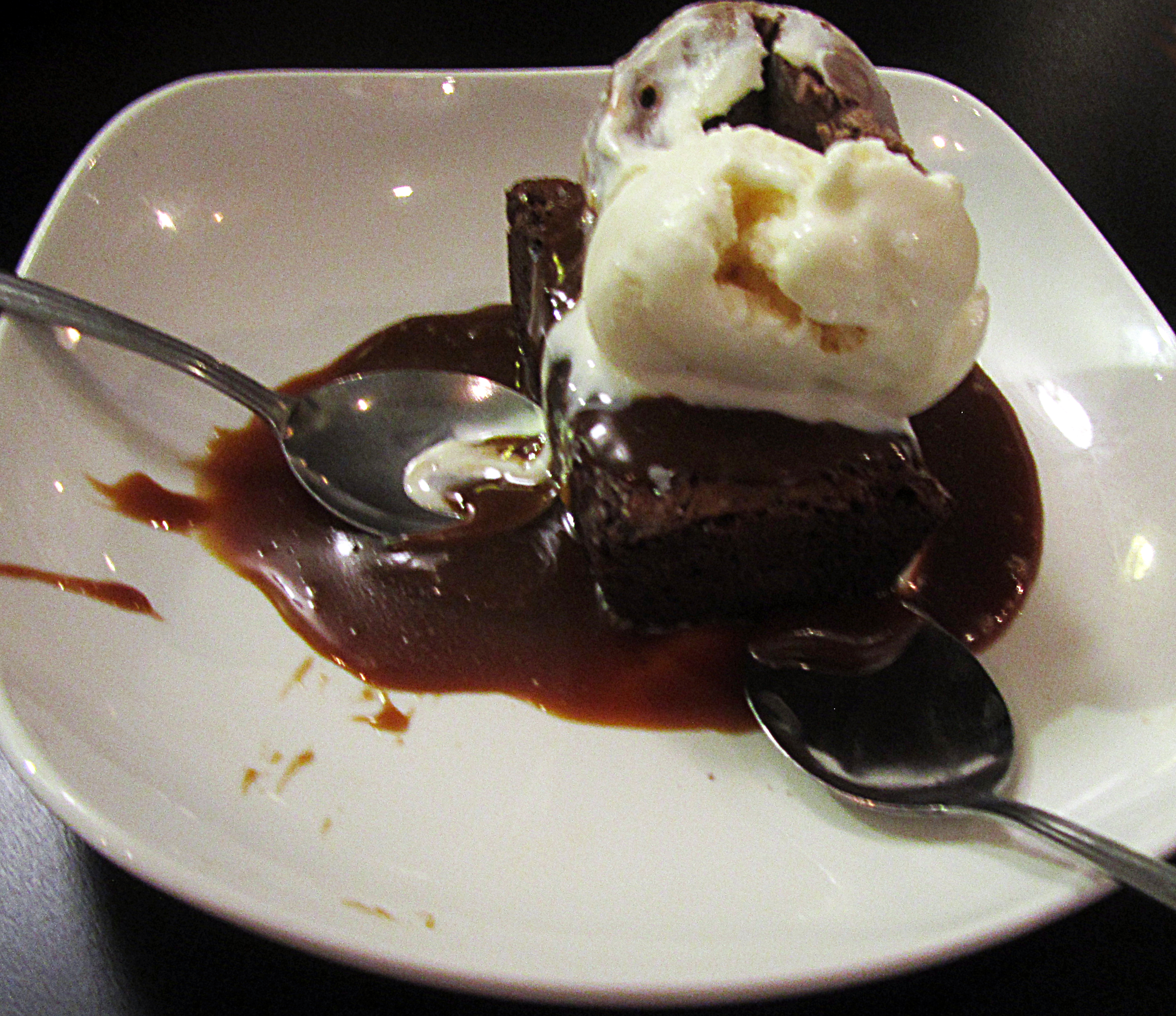 Michigan Mud Pie, shown here with a scoop each of vanilla and chocolate ice cream. We were given a choice.