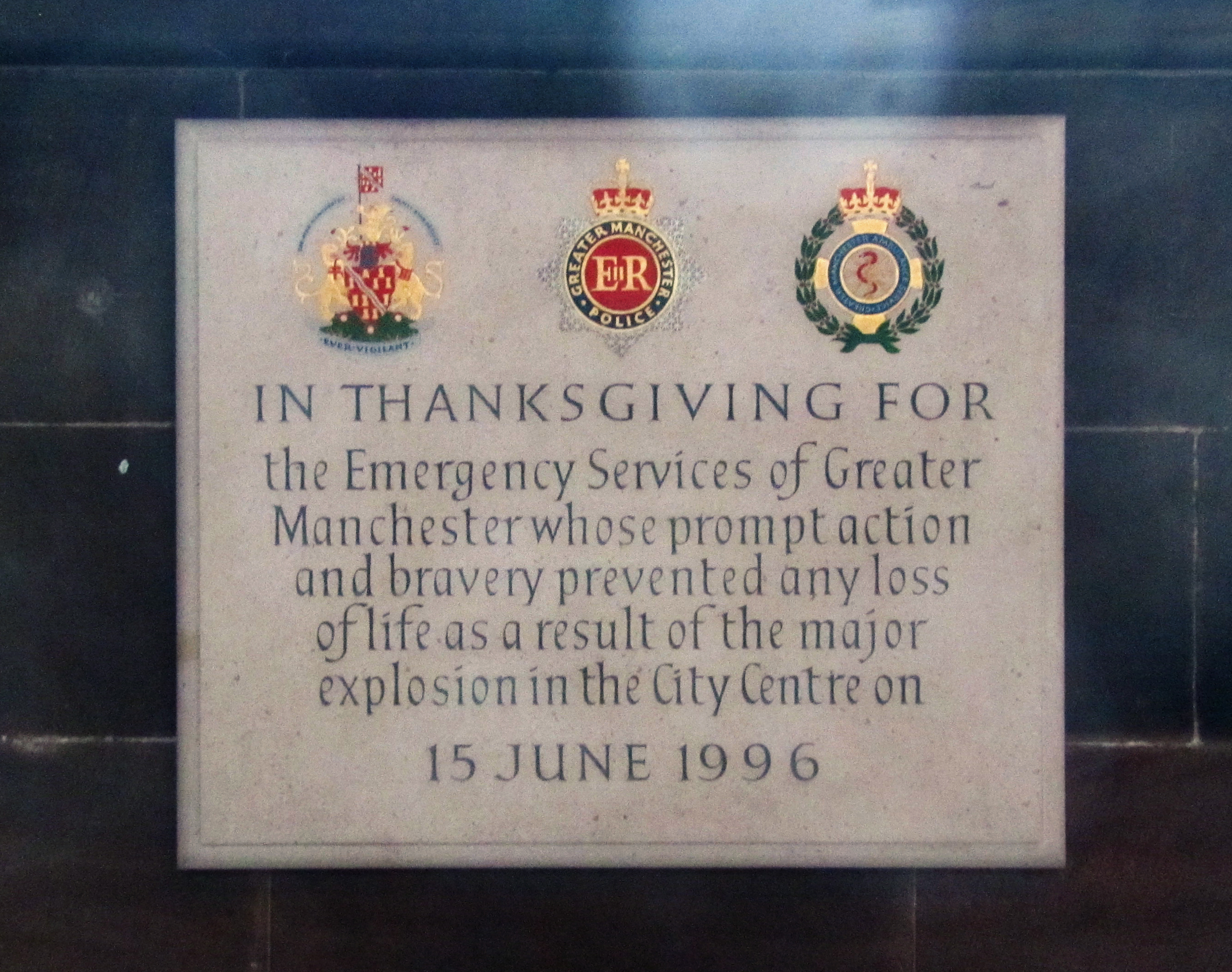 What that plaque is not quite saying is that the IRA bombed City Centre (very near the cathedral, I’m told) in 1996. Following that attack, naturally, people rallied to rebuild whatever was damaged, and it mobilized a lot of good energy, it seems.
