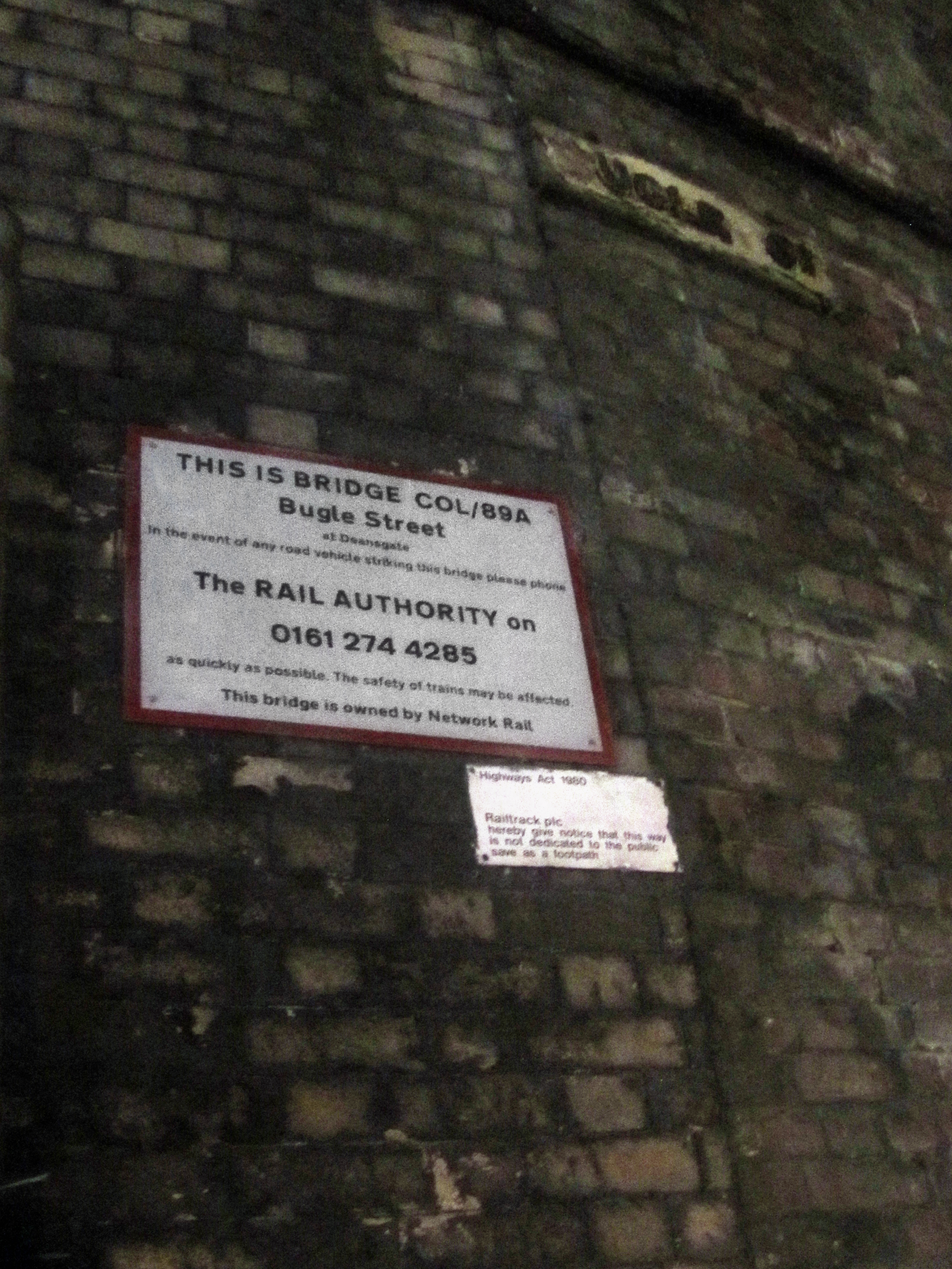 “LITTLE PETER STREET!” one non-compliant edifice shouts, placing me back on the map. Now I must feign being lost. I turn my lens toward the railroad tracks, whose massive Victorian arches I follow. Red bricks, blackened with damp, and green with lichen and moss, recount lifetimes of industry, dereliction, reuse—whatever my eye will read into them. Surely there was a history here. Mundane as a train schedule, unrelenting as rain, ubiquitous as cotton thread, or: unrelenting as trains, ubiquitous as rain, mundane as cotton. No matter. Ponderous and decayed but lasting as the capitalist’s monument to himself.